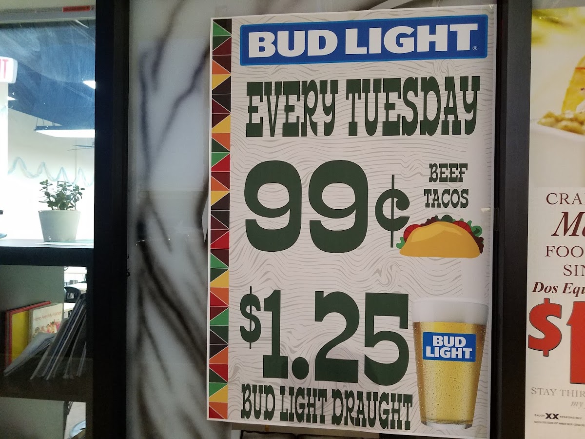 Choice of one taco with protein options including steak, chicken, or beef, accompanied by Mexican rice and beans.